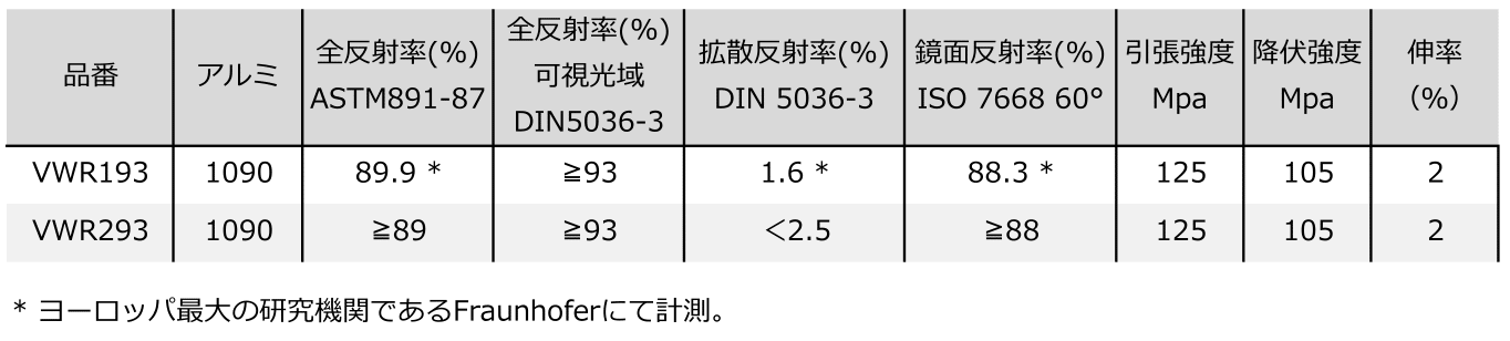 耐候性アルミ鏡面反射板『vega energy』